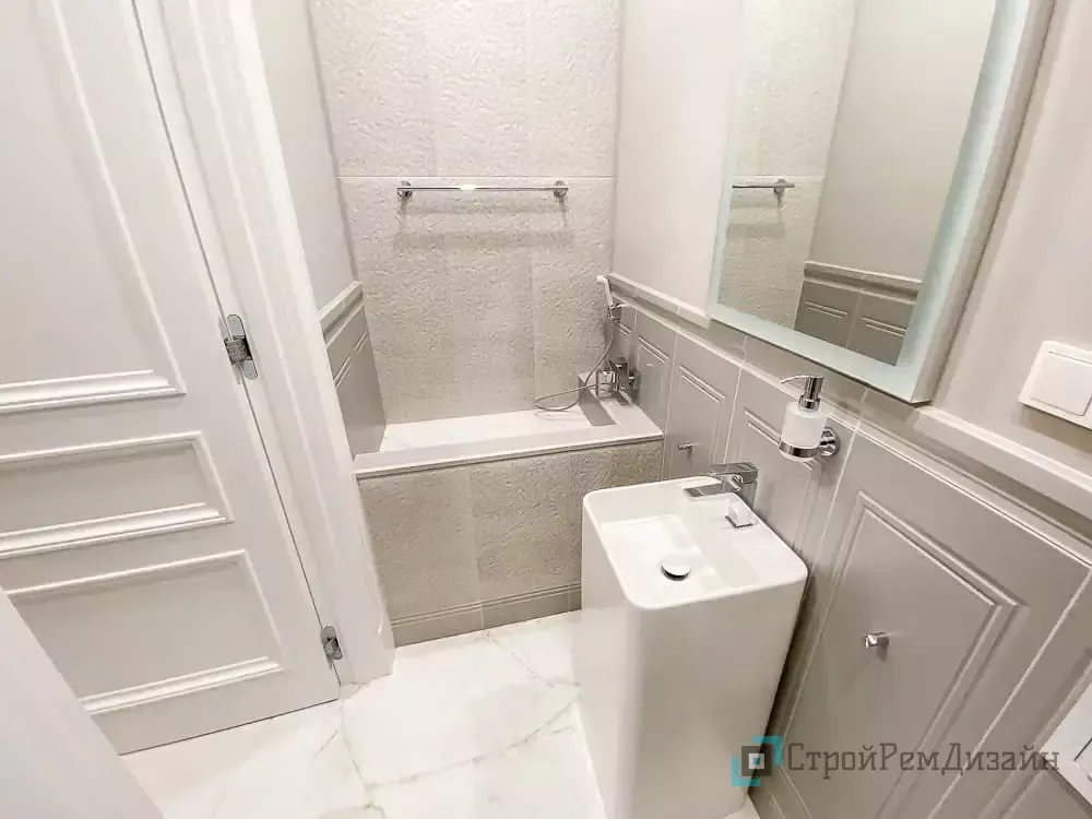 | Стандарт ремонт | 20 000 - 35 000 ₽/м2 | Полный демонтаж, замена всей электрики и сантехники, штукатурка существующих стен, выравнивание пола стяжкой, укладка плитки и керамогранита, малярные работы по стенам и потолку, укладка напольных покрытий. |